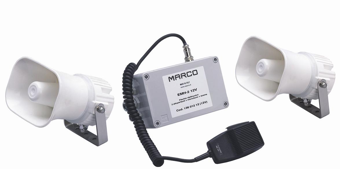 Su geçirmez çiftli elektronik megafon AISI 316 paslanmaz çelik braketli ,siyah mikrofonlu ve elektrik ünitelidir.Bu ünitenin otomatik sis sinyalli, çift aux girişli (VHF ve stereo), mikrofonlu ve dört farklı fonksiyonda kullanılabilen acil yardım sinyallidir. Bu fonksiyonları; sisli hava şartlarında teknelerin dikkatini çekmeye, liman ile haberleşmeye, diğer teknelere yanaşırken haber vermeye ve müzik dinlemeye yarar. Yarış botları, feribotlar, polis ve petrol teknelerinde kullanılır.