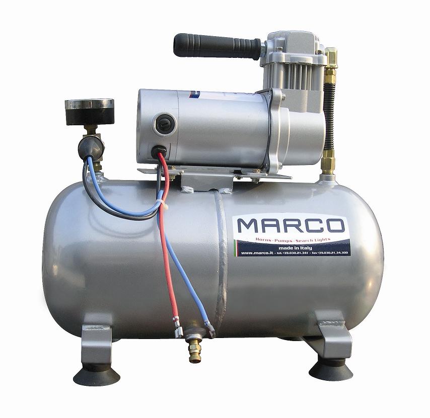 Elektrikli hava kompresörü. 8 lt kapasiteli kompresör onaylanmış kornalar içindir. 8 bar güç ile çalışır.