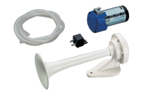 Elektroneupmatik korna 25 cm uzunluğunda olup yüksek ses çıkışına sahiptir. Elektrik kompresörü, boru takımı ve montaj aksesuarlarıyla birliktedir. Pirinç üzerine epoksi boyalı borulu ve beyaz ABS borulu olmak üzere iki farklı modeli vardır.