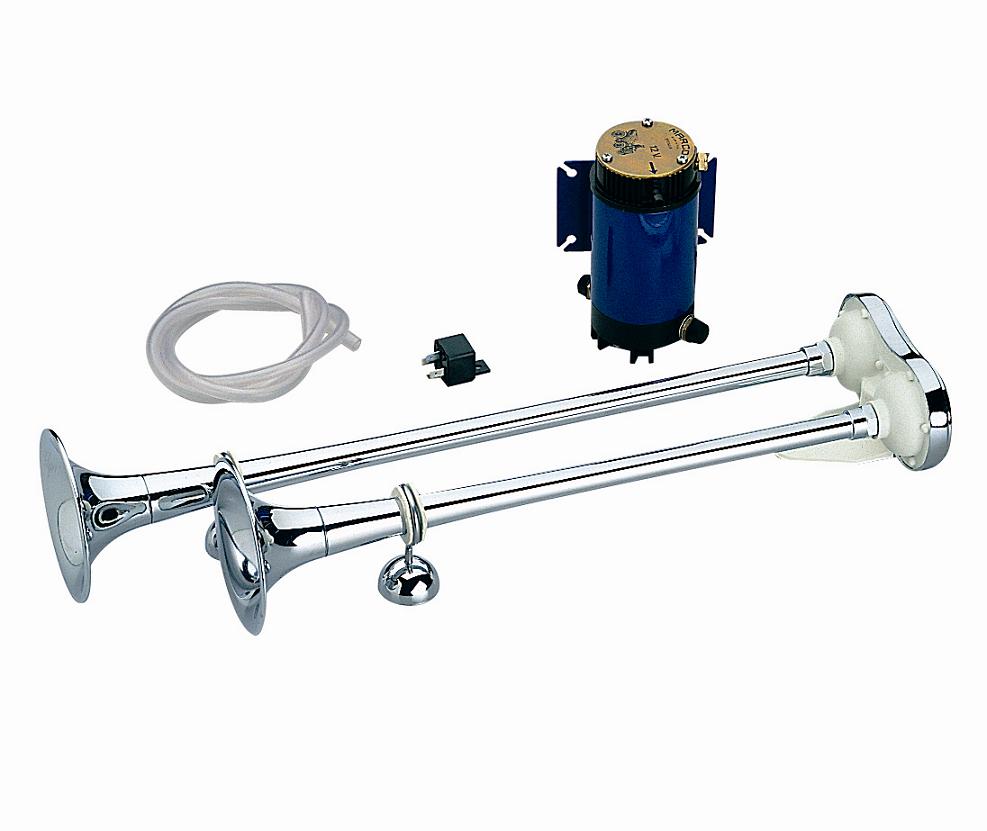 Çiftli havalı korna yüksek kalitede pirinç krome boruludur. Elektirikli kompresörü ve montaj aksesuarları ile birliktedir. Sesi uyumlu ve güçlüdür.