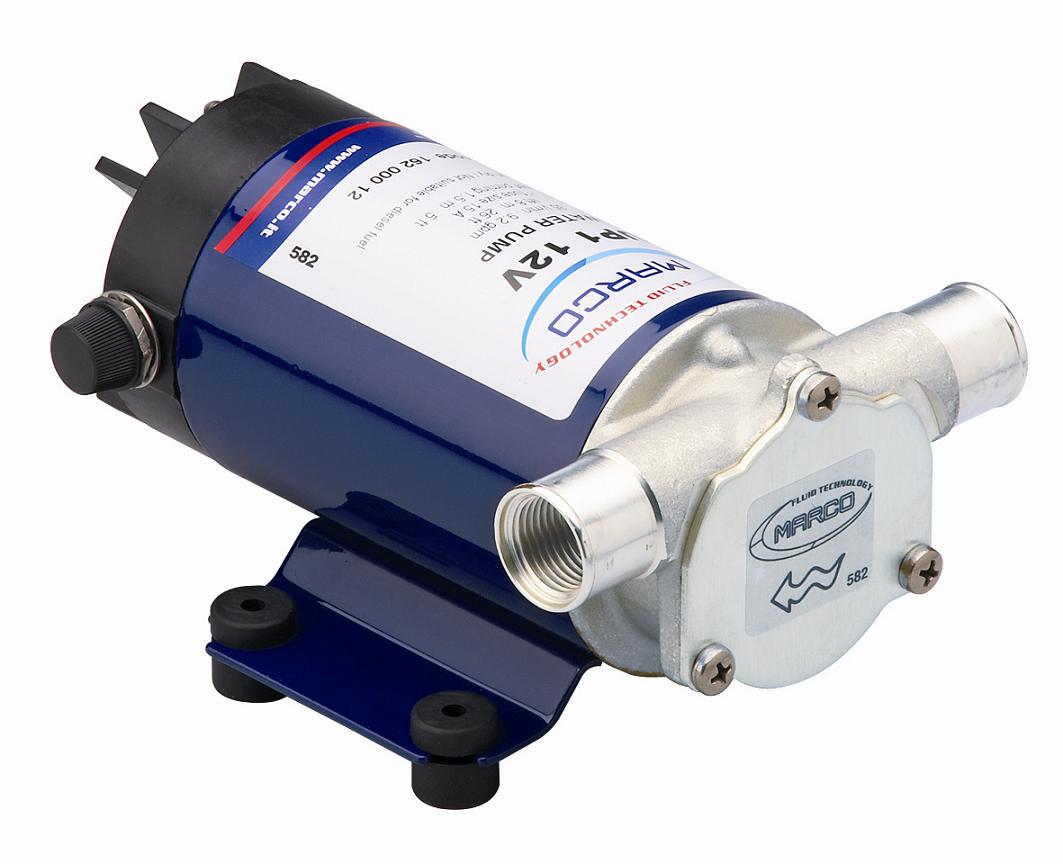 Elektrikli su pompası, esnek impelleri sayesinde yüksek performanslı ve uzun süreli çalışması sağlanır. Gövdesi pirinç üzerine nikel kaplama olup şaftı paslanmaz çeliktendir. İsteğe bağlı olarak 1/2`` rekorla veya 25mm hortum ile kullanılabilir. Akış Hızı: 35L/dk. Ölçüleri: 179x120x94