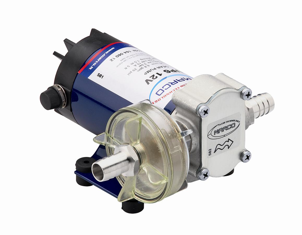 Yakıt ve su transfer pompası farklı nitelikteki sıvıların transferinde kullanılması için bronz dişli ve filitrelidir.Pirinç gövdeli olup şaftı paslanmaz çeliktendir. 16mm olan iç boru çapı için 1/2`` kalınlığındaki pirinç bağlantılar kullanılabilir. Dizel yakıt,su ve antifiriz transferinde kullanılır. Akış hızı:26L/dk. Ölçüleri: 199x174x108