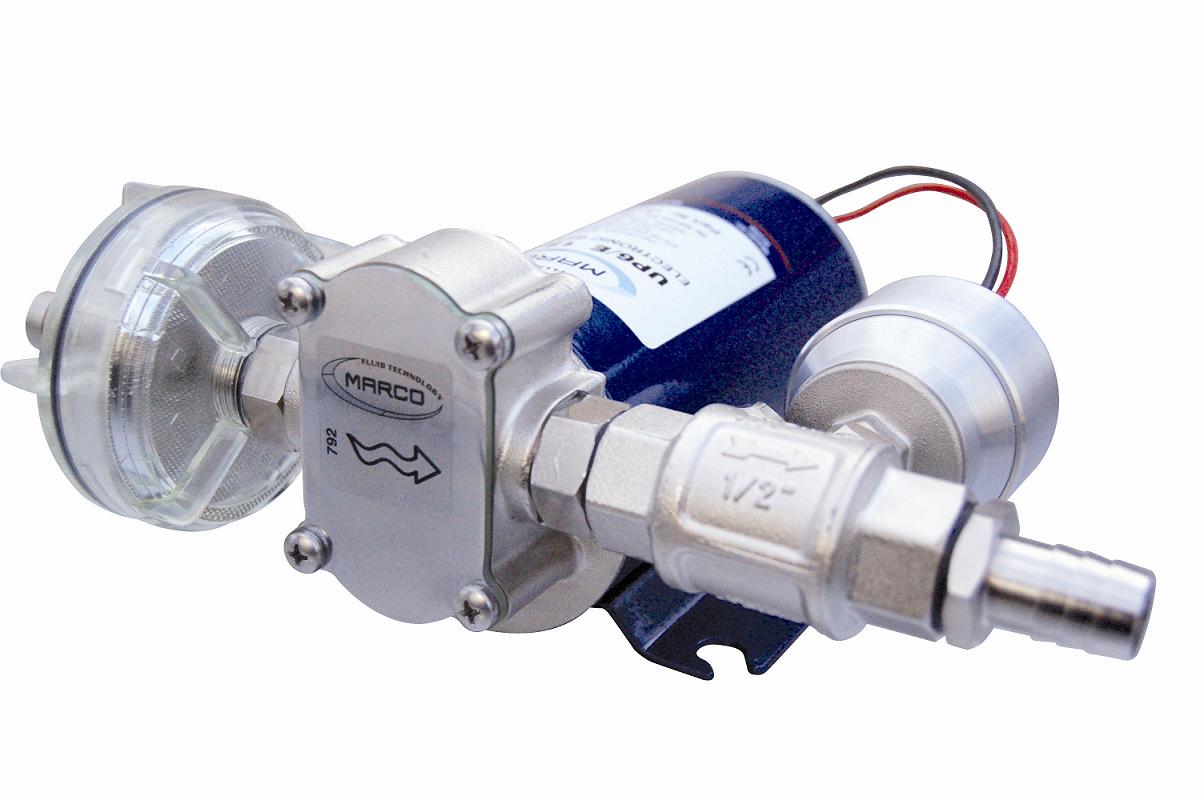 Otomatik su pompası basınç sistemlidir. 12/24V üniversal voltajlı ve çek valflidir. Gövdesi pirinç üzerine nikel kaplamadır. Duş kiti olan yatlarda, kauçuk botlarıda ve yelkenli teknelerde kullanılır. Akış hızı: 26L/dk. Ölçüleri: 199x261x108
