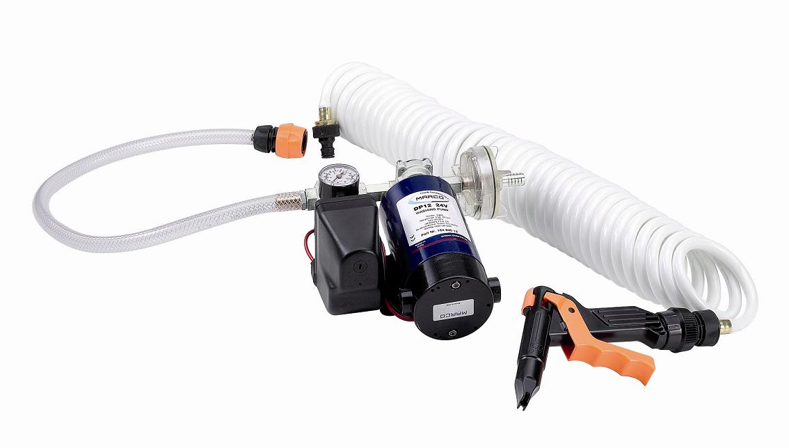 DP12 Teflon helisel dişli elektirikli pompalara dahil edilen kittir. 10m uzunluğunda sarma hortumlu ve tabancalıdır. Pompanın gövdesi pirinç üzerine nikel kaplamadır. Filitreli, basınç switch`li ve çek valflidir. Bu kit özellikle yıkama tatlı ve tuzlu su ile kullanılabilir. Yüksek basınçlı yıkamalar için uygundur.Akış hızı: 15L/dk. Ölçüleri: 213x261x115