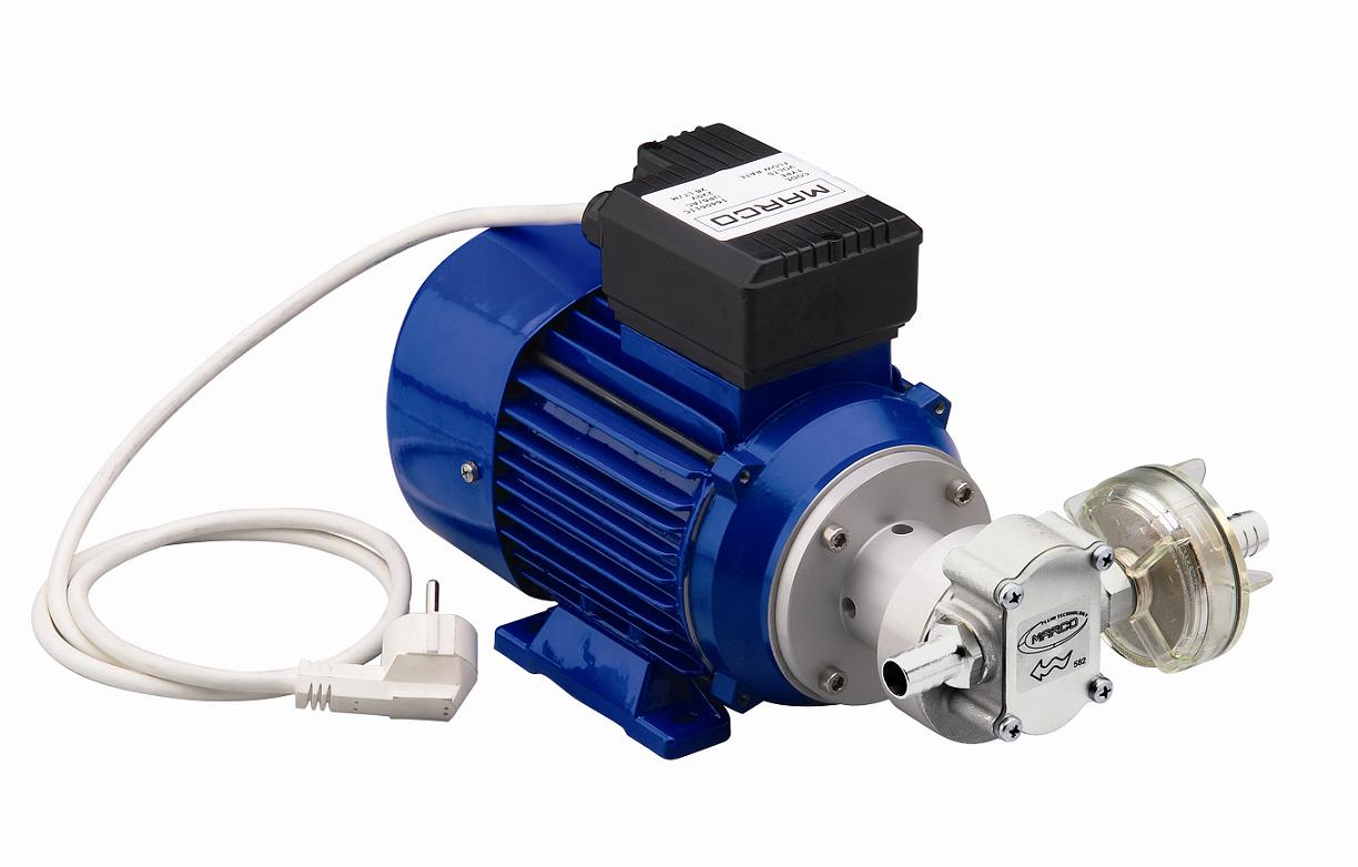 Elektirikli pompa su, yakıt ve kalın yağların transferinde kullanılır. Pirinç gövdeli, bronz dişli, filtreli ve şaftı AISI 303 paslanmaz çeliktendir.16mm olan boru çapı için 1/2`` kalınlığında bağlantılar kullanılabilir. Motoru 0,55kW ve 3,8A Akış hızı: 28L/dk. Ölçüleri:330x174x182