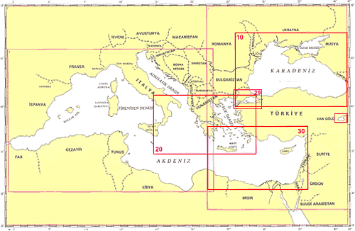 | Akdeniz, İskenderun - Derna | 1 102 000 | 30° 30'.00 N - 37° 45'.00 N 22° 27'.00 E - 36° 17'.00 E | Mart 1972 March
