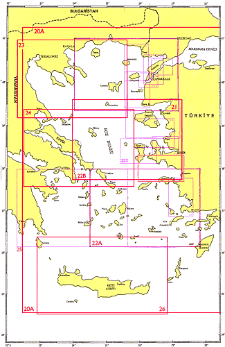 222 | Ege Denizi | 100 000 | 38°07'.00N - 38°43'.00N | Ağustos 1967 | Mayıs 2005 |